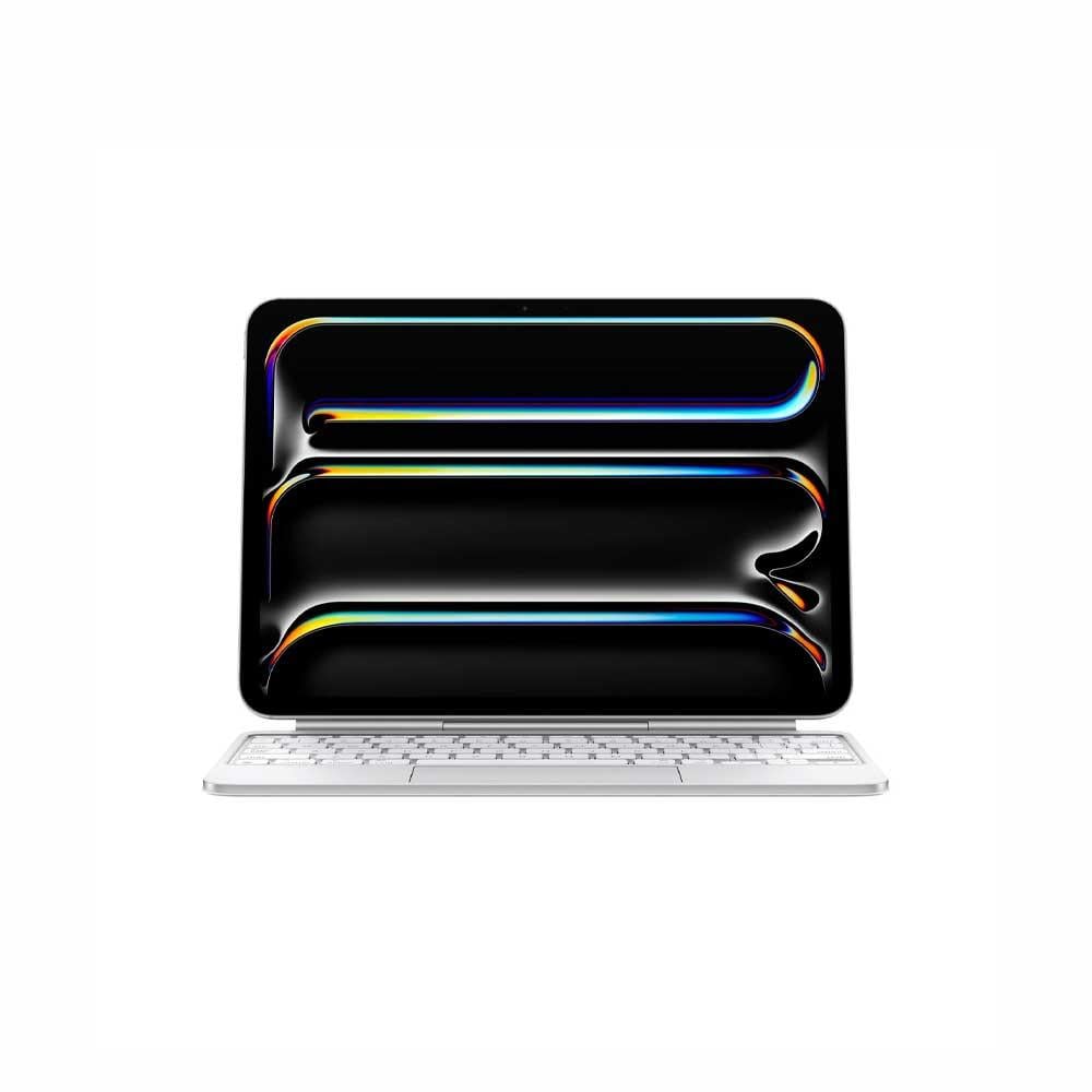 توفر لوحة المفاتيح السحرية لجهاز iPad Pro تجربة كتابة ولوحة تتبع مذهلة في تصميم جديد أنيق ومحمول مع مسند راحة اليد من الألومنيوم. تتضمن لوحة المفاتيح صفا وظيفيا مكونا من 14 مفتاحا للوصول السريع إلى ميزات مثل سطوع الشاشة وعناصر التحكم في مستوى الصوت، وموصل USB-C للشحن المروري. يتكيف تصميم الكابولي العائم بسلاسة مع زوايا المشاهدة المتعددة. تعد لوحة التتبع الجديدة الأكبر مع التعليقات اللمسية مثالية للمهام الدقيقة مثل تحرير جدول بيانات وتحديد النص، أو ببساطة التنقل في جهاز iPad الخاص بك باستخدام إيماءات اللمس المتعدد البديهية والمألوفة. ويوفر الغطاء الخارجي المتين الحماية الأمامية والخلفية، وهو مثالي لأخذ iPad Pro إلى أي مكان.