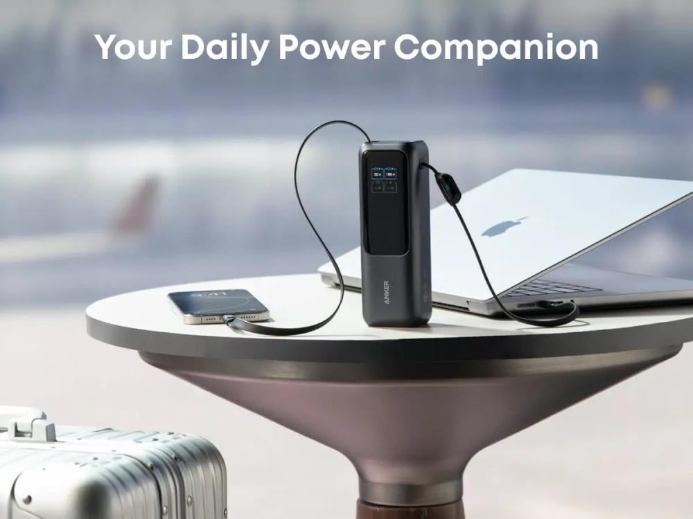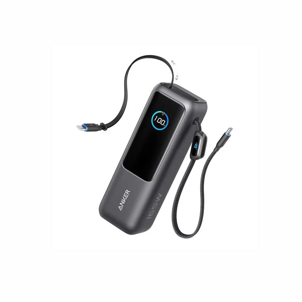 شاحن أنكر باور بانك 25000mAh 165W شاحن محمول فائق السرعة مع كابلات USB-C مدمجة وقابلة للسحب (الموديل A1695)