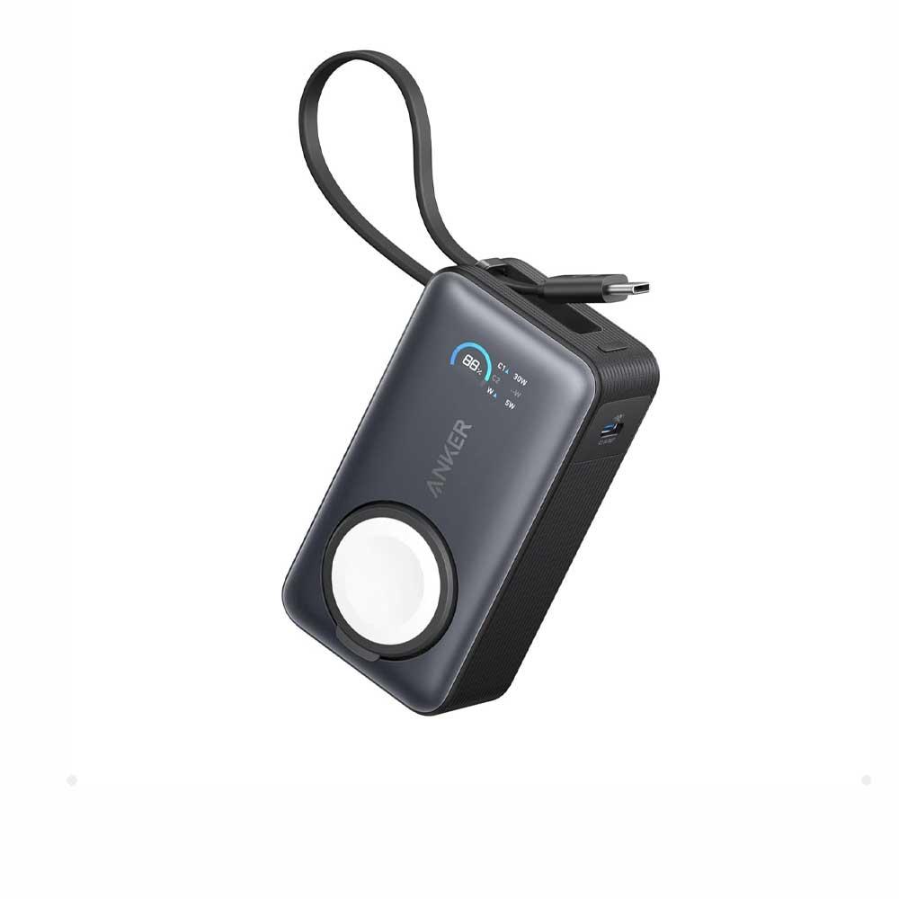 بطارية انكر ماج جو بسعة 10000 ملي امبير بقوة 35 واط يدعم شحن ساعة ابل مع منفذ تايب سي وسلك مدمج تايب سي - اسود
