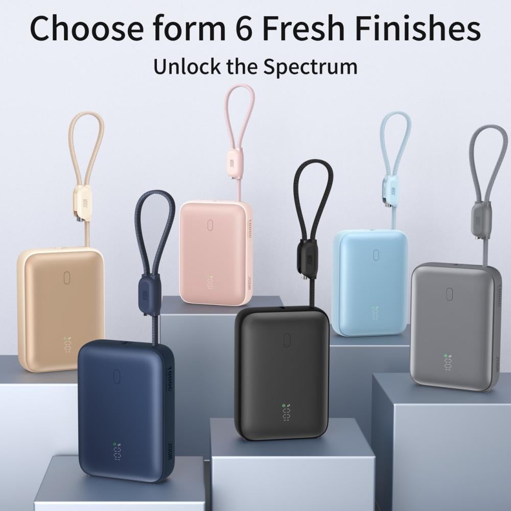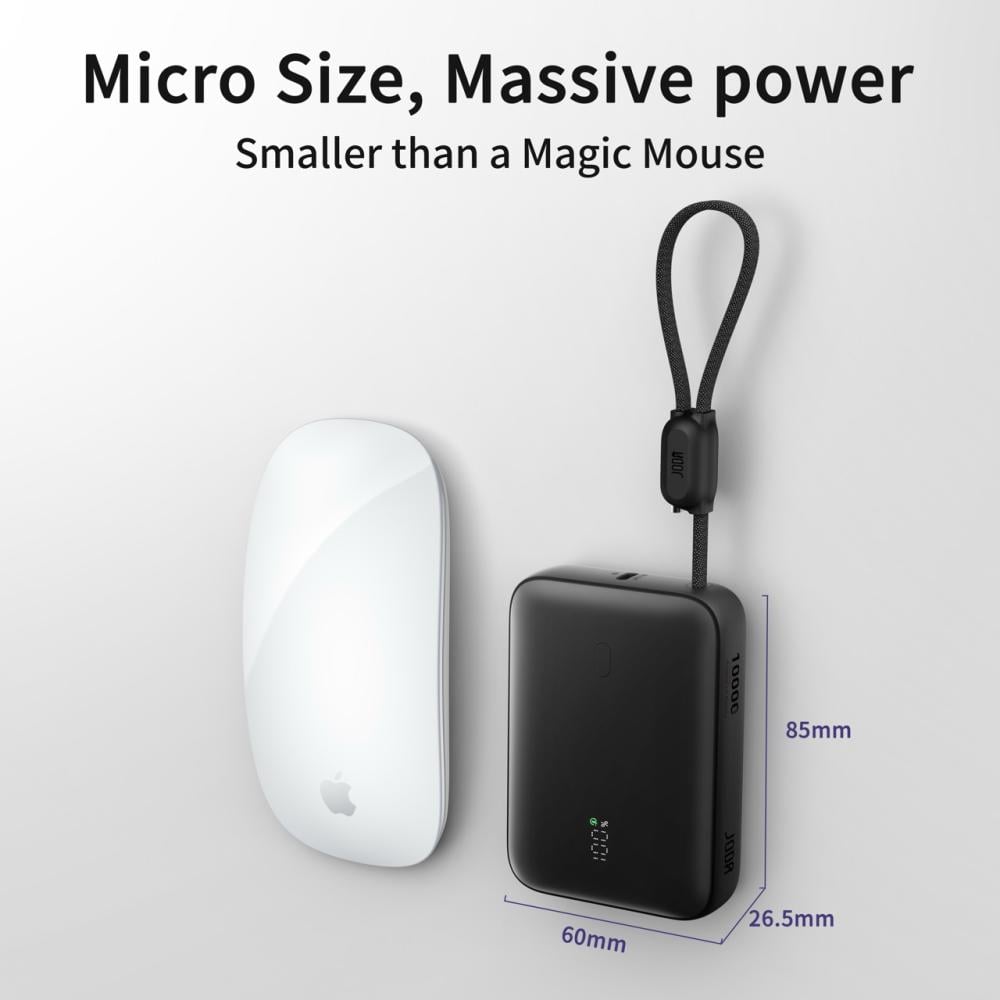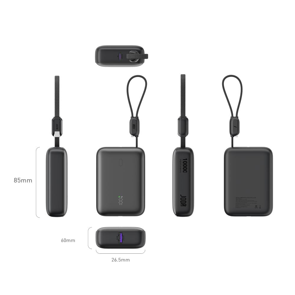 بطارية متنقلة من جودا بسعة 10,000 ملي أمبير، بتصميم صغير وخفيف يناسب الجيب أو الحقيبة بسهولة. تدعم الشحن السريع بقدرة 22.5 واط مع منفذ تايب سي ومنفذ USB-A بالإضافة إلى كابل تايب سي مدمج، لتكون الحل المثالي لشحن هاتفك وأجهزتك أثناء التنقل بدون حمل كابلات إضافية.