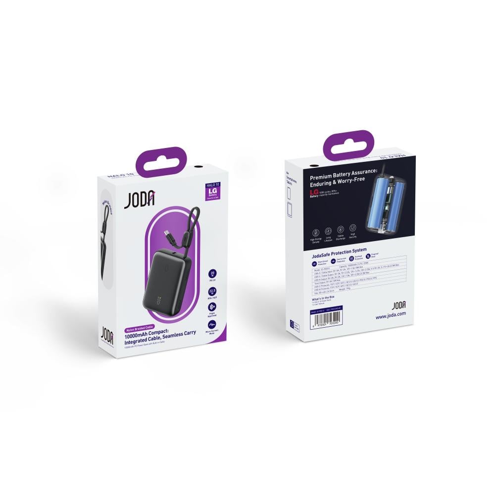 بطارية متنقلة JODA Halo 10 بقوة 22.5 واط بسعة 10000 ملي امبير بمنفذ يو اس بي مع سلك تايب سي مدمج - اسود