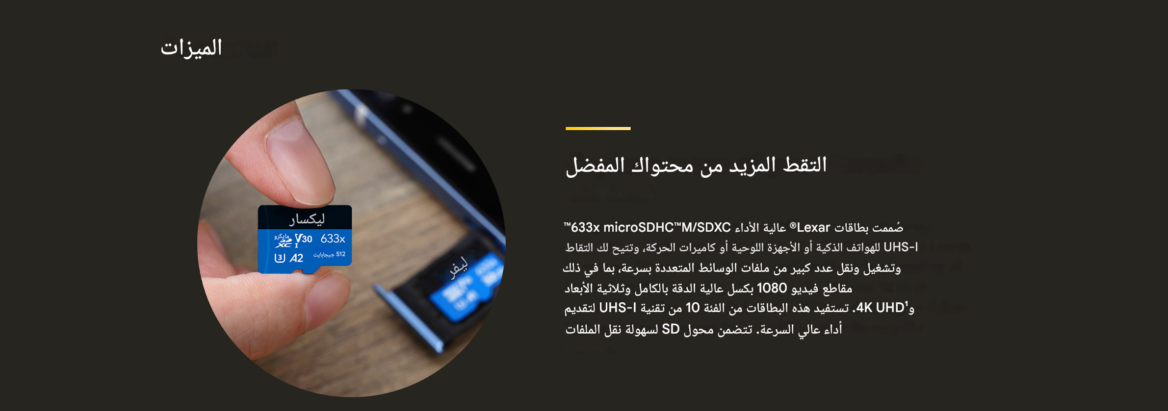انقر هنا للمزيد من Lexarبطاقة ذاكرة 128 جيجا لكسار High-Performance 633x بسرعة قراءة 100ميجابايت/ثانية وسرعة كتابة 45 ميجابايت/ثانية