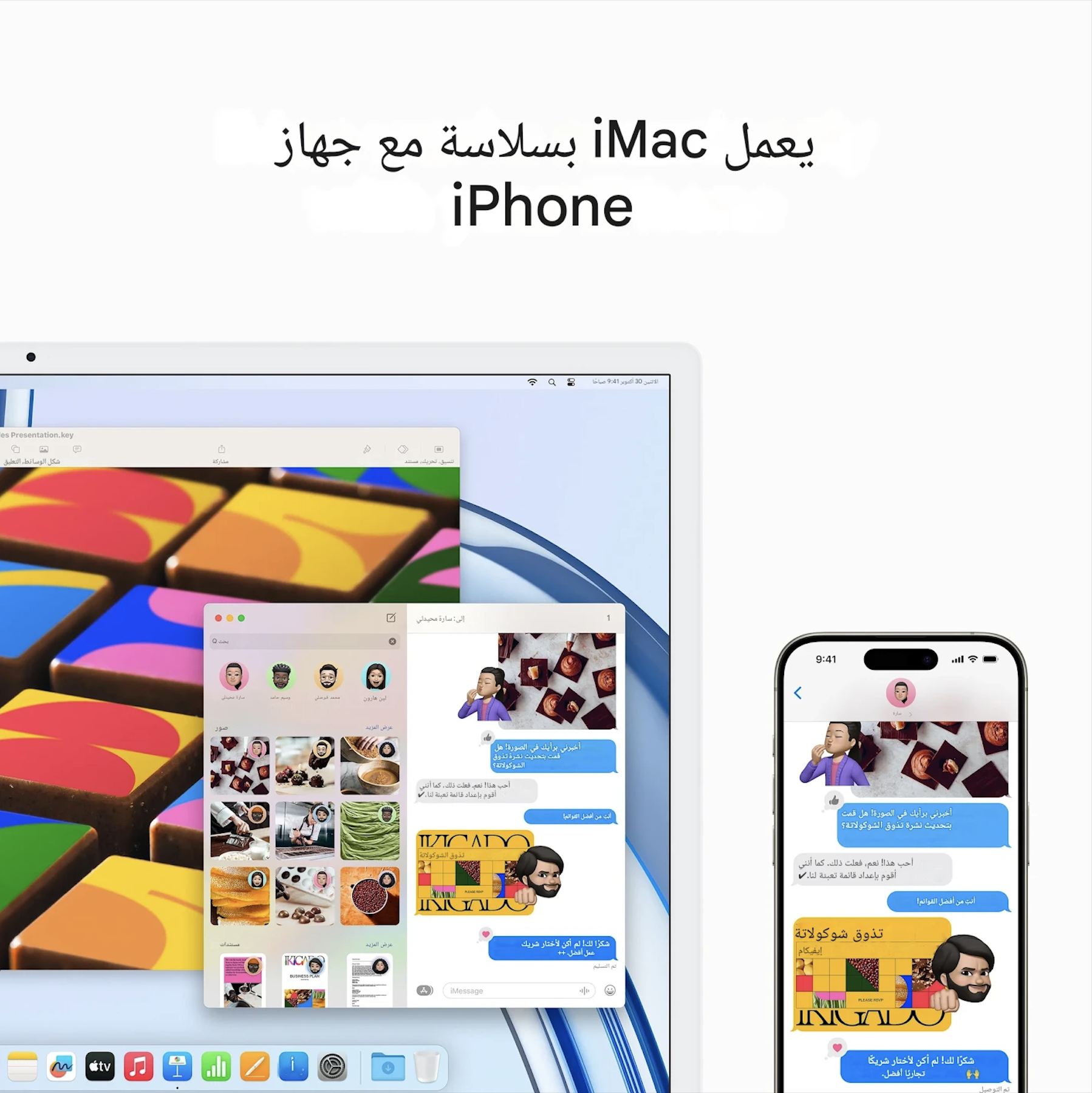 جهاز iMac الجديد يقدم تجربة سطح مكتب متكاملة تجمع بين الأداء العالي والتصميم الأنيق، وهو الآن مزوّد بشريحة Apple M3 الجديدة التي توفر أداءً فائقًا وسرعة استجابة محسّنة سواء في العمل أو الترفيه. يتميز بشاشة Retina مقاس 24 إنش بدقة 4.5K وسطوع 500 شمعة، مع دعم لعرض مليار لون، مما يجعل المحتوى نابضًا بالحياة من الأفلام إلى تحرير الصور. التصميم الكل في واحد يأتي بهيكل نحيف وأنيق، ويتوفر بأربعة ألوان مميزة تضيف لمسة جمالية لأي مساحة.