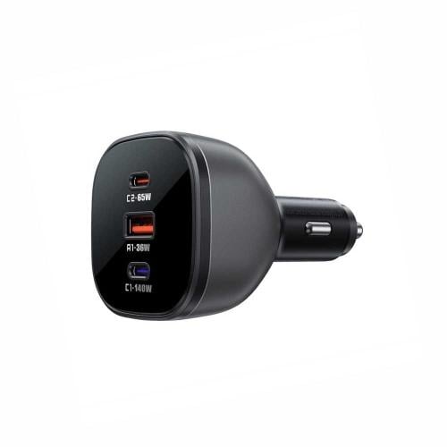 شاحن سيارة AceFast بمنفذين تايب سي ومنفذ USB-A بقوة 165 واط - اسود