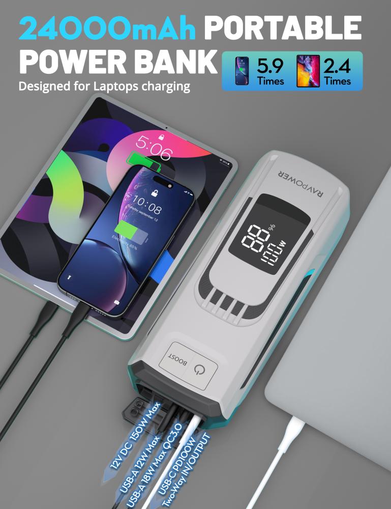 مشغل سيارة وبطارية راف باور بسعة 24000 ملي امبير بقوة 88.8 واط