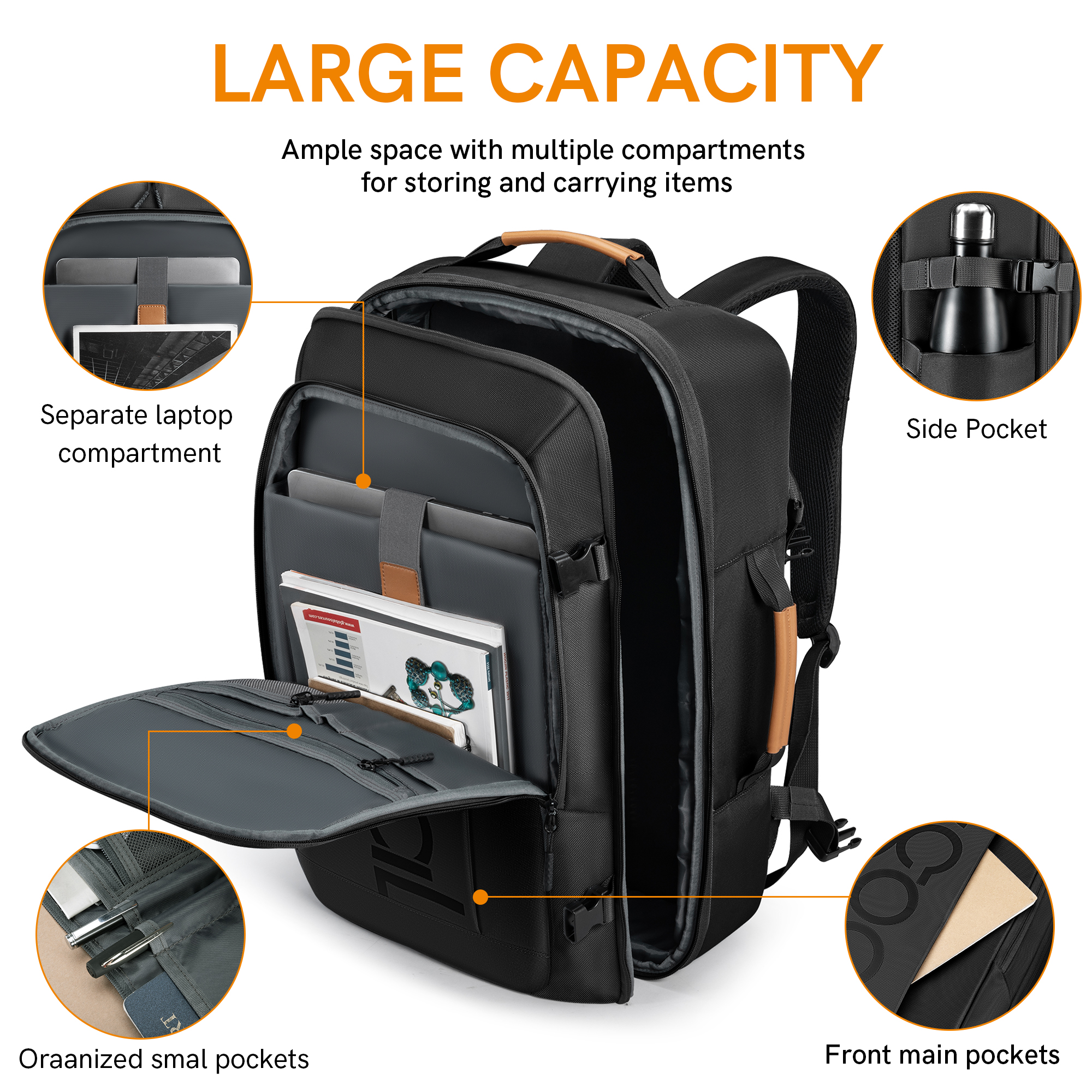 • المقصورة المخصصة للابتوب: مزودة بحجرة مبطنة تستوعب أجهزة اللابتوب حتى حجم 15.6 بوصة، مما يوفر حماية إضافية لجهازك.