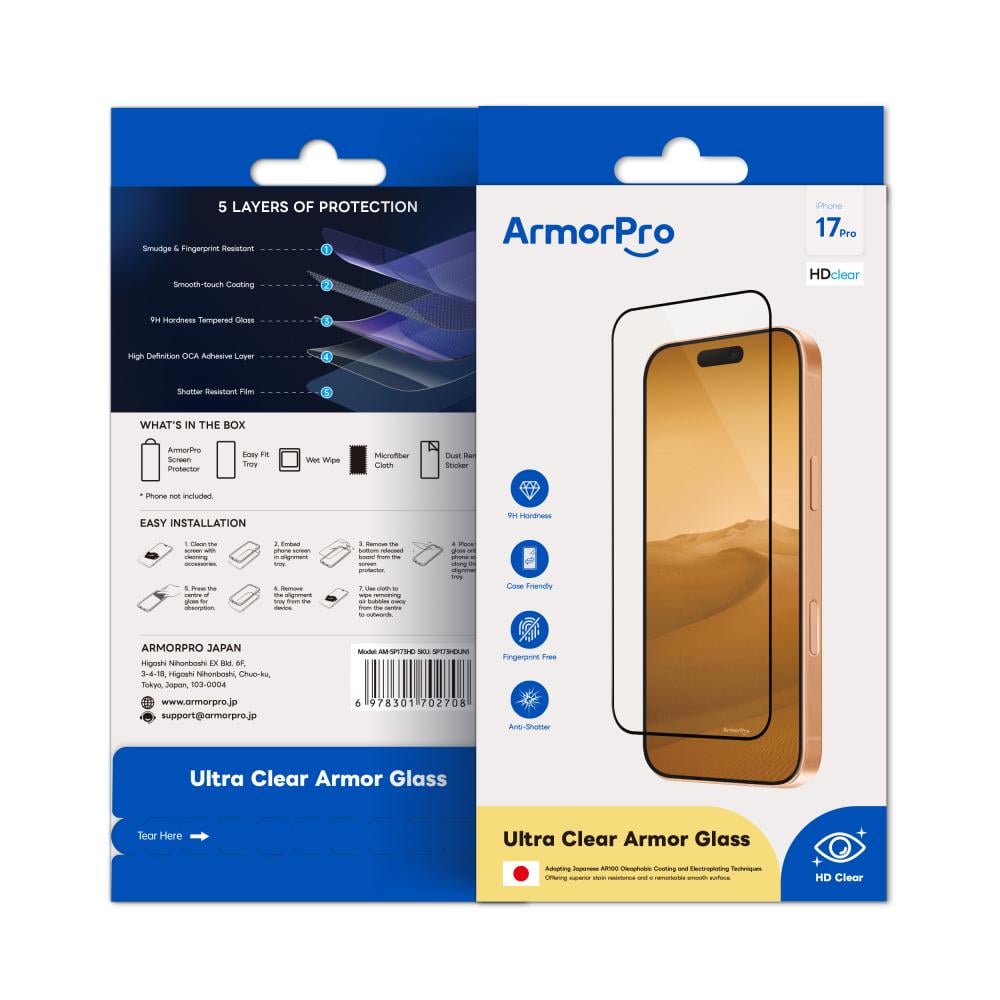 ارمور برو – حماية شاشة زجاجية فائقة الوضوح لجهاز برو iPhone 17 ، تمنح شاشة جهازك حماية متقدمة مع وضوح عالي يحافظ على دقة الألوان والتفاصيل. تتميز بصلابة 9H لمقاومة الخدوش والصدمات، وطبقة مقاومة للبصمات، بالإضافة إلى تصميم متوافق مع الأغطية لتوفير حماية متكاملة.