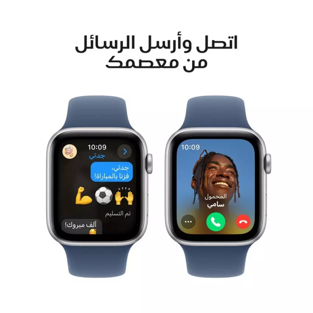 ساعة ابل SE GPS مقاس 40 مم المينيوم فضي مع سوار رياضي ازرق S/M