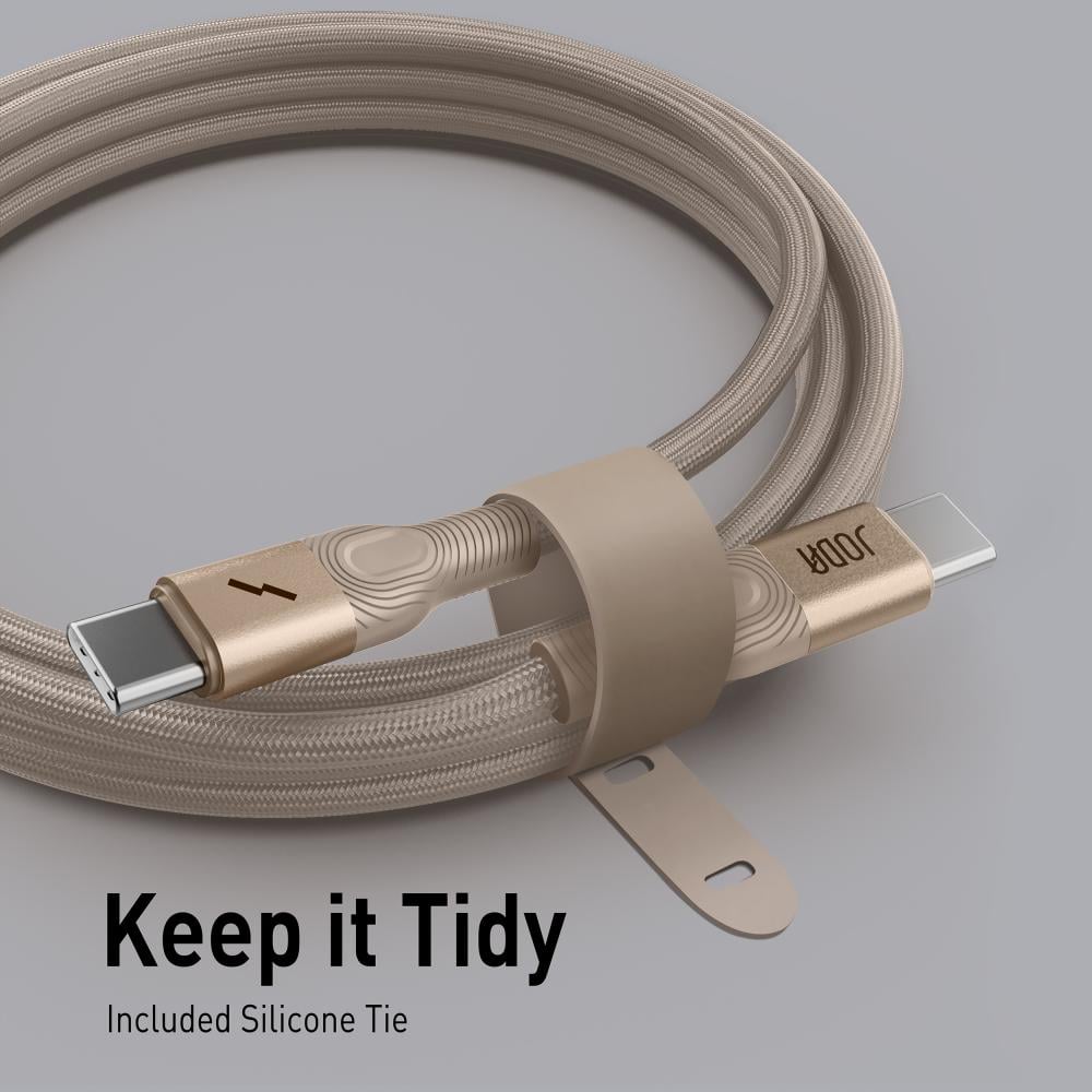 - حافظ على ترتيب الكابل بسهولة أثناء التنقل أو التخزين مع ربطة السيليكون الذكية المرفقة.
