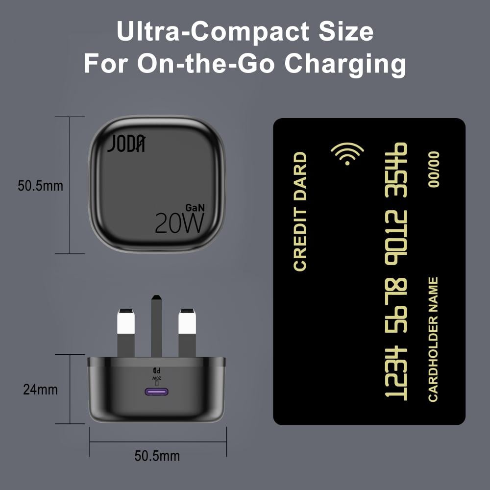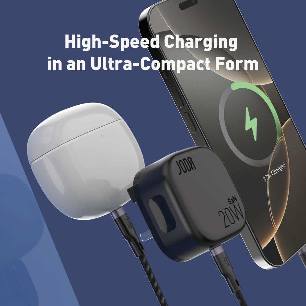 شاحن JODA GaN بقوة 30 واط يقدم لك أداء عالي وسرعة شحن مذهلة في تصميم صغير لا يتجاوز حجم بطاقة البنك. مصنوع بتقنية GaN المتطورة التي تضمن كفاءة عالية وتوليد حرارة أقل، ليكون خيارك الذكي في كل مكان.