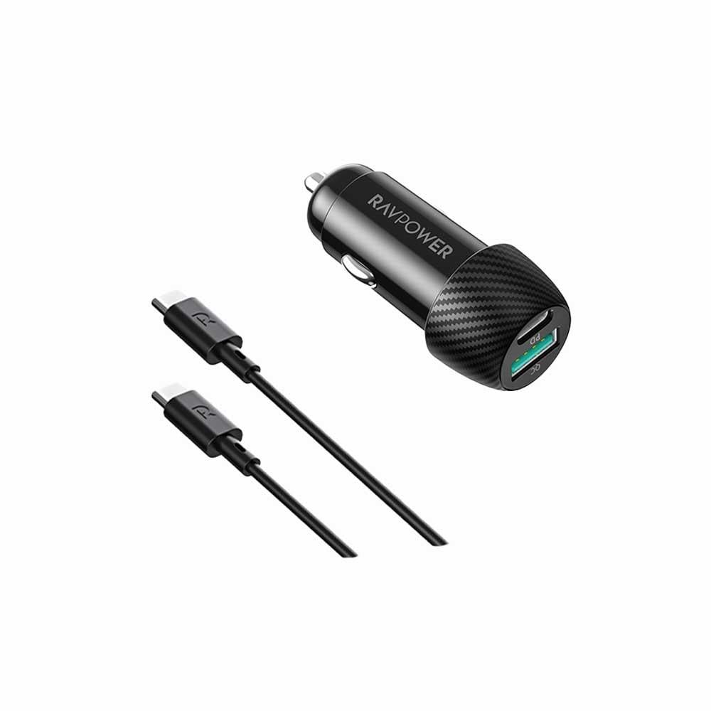 شاحن سيارة راف باور بايونير بقوة 49 واط بمنفذ تايب سي ومنفذ يو إس بي - أسود