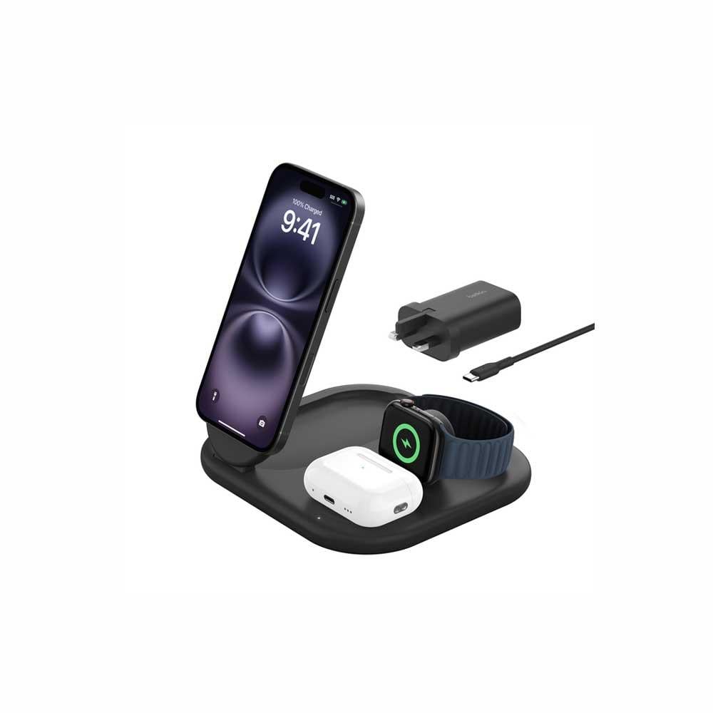 حامل شحن Belkin 3 في 1 Qi2 - أسود