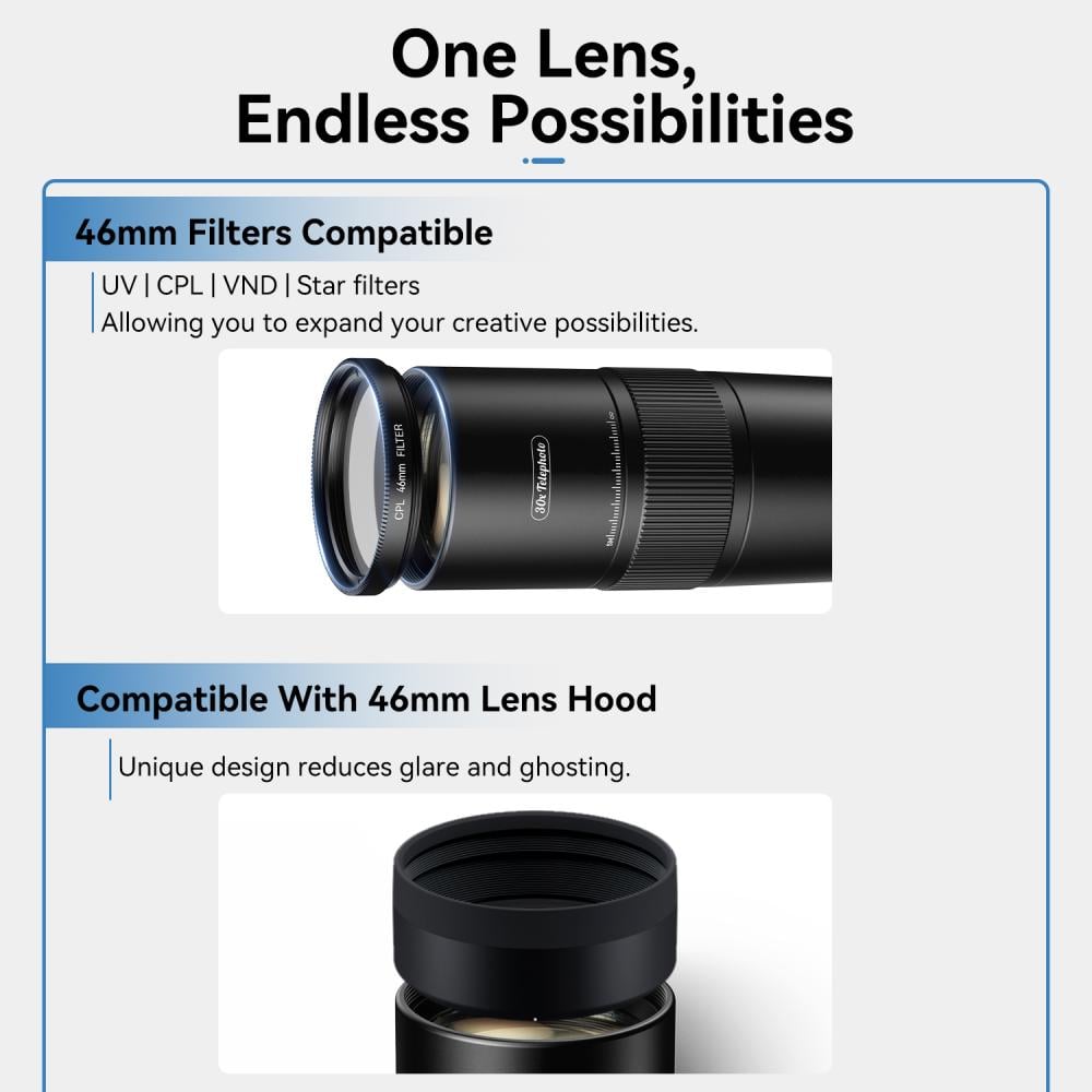 عدسة Apexel APL-T30XJJ028 هي عدسة تليفوتوغرافي مخصصة للهواتف الذكية، توفر تقريبًا بصريًا يصل إلى 30X، مما يجعلها مثالية لتصوير الأجسام البعيدة بجودة عالية. فيما يلي أبرز مواصفاتها وميزاتها: