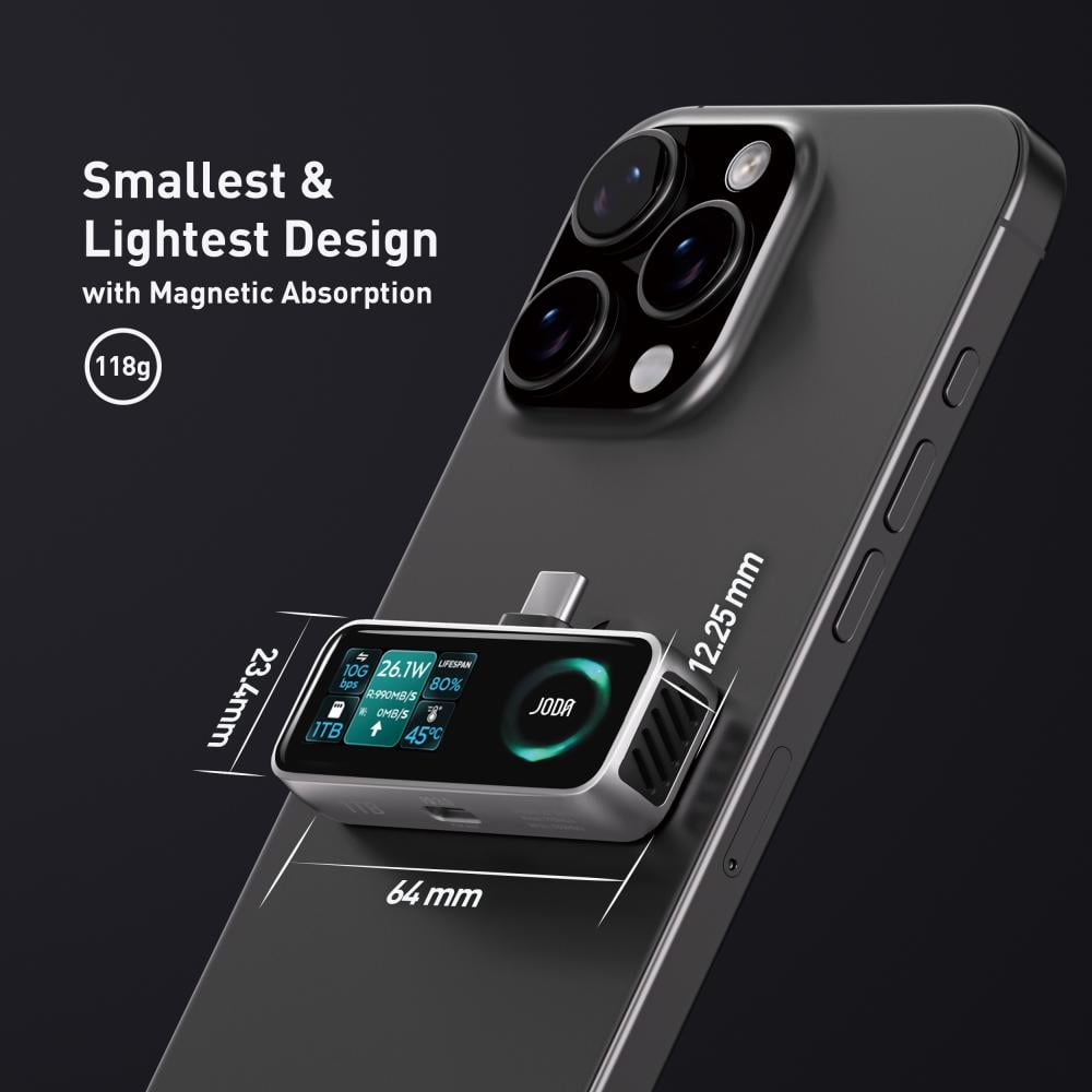 قطعة نقل بيانات JODA بسعة 1 تيرا بايت تايب سي مع شاشة رقمية - اسود