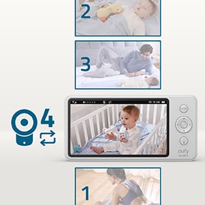 عند توصيل كاميرتين أو أكثر ، ستنقل الشاشة تلقائيًا بين كل عرض ، مما يمنحك تغطية كاملة لبيئة طفلك.