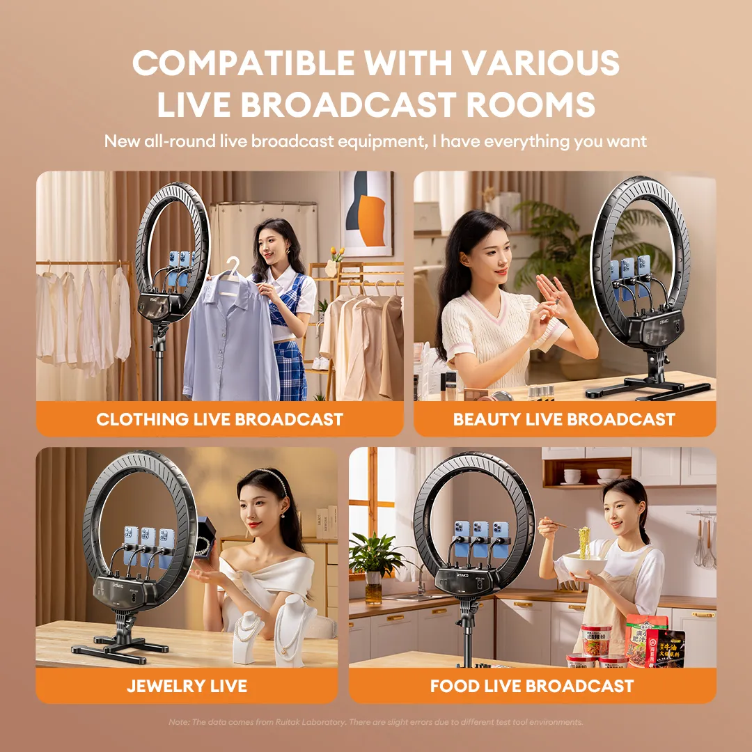 - إضاءة مثالية للبث المباشر والتصوير الاحترافي: يوفر المصباح إضاءة ناعمة ومتساوية دون وهج، مما يجعله مثاليًا لصانعي المحتوى، وعروض الجمال، وبث الطعام، وتصوير المنتجات.
