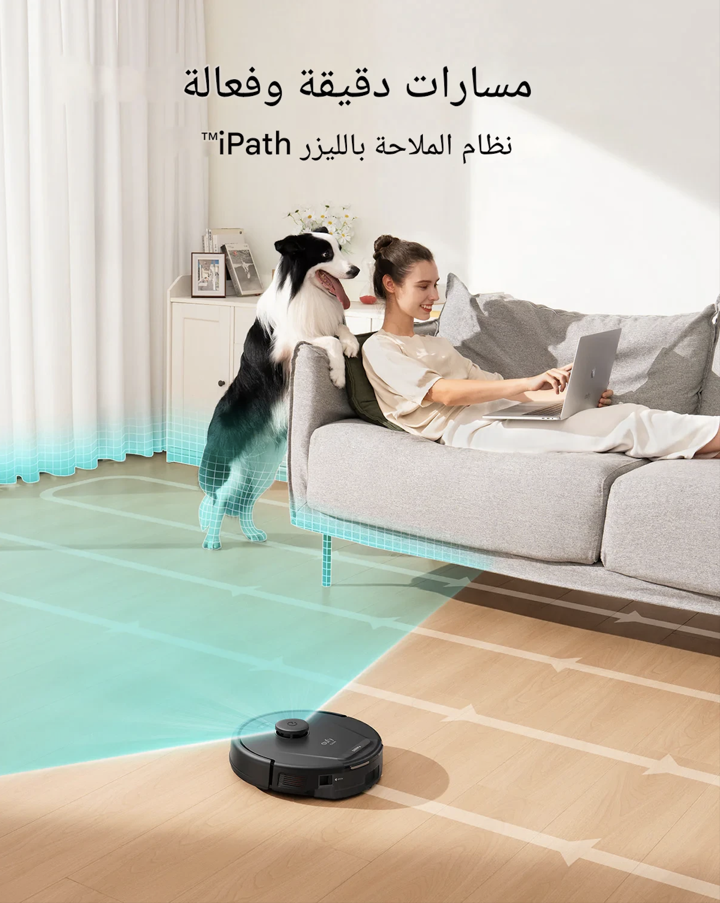 المكنسة الروبوتية eufy Clean L60 Hybrid تأتي بتصميم ذكي ومواصفات قوية تجعلها مناسبة للاستخدام اليومي في المنازل الحديثة. تتميز بمحرك يوفر قوة شفط عالية تصل إلى 5000 باسكال، ما يضمن إزالة فعالة للأتربة والشعر وبقايا الطعام من الأرضيات الصلبة والسجاد. تعتمد في تنقلها على نظام ملاحة ليزري دقيق بتقنية iPath LiDAR، والذي يسمح لها برسم خريطة واقعية للمنزل وتخطيط مسار التنظيف بشكل منظم وفعّال، مع القدرة على تفادي العوائق وتغطية جميع الزوايا بكفاءة.