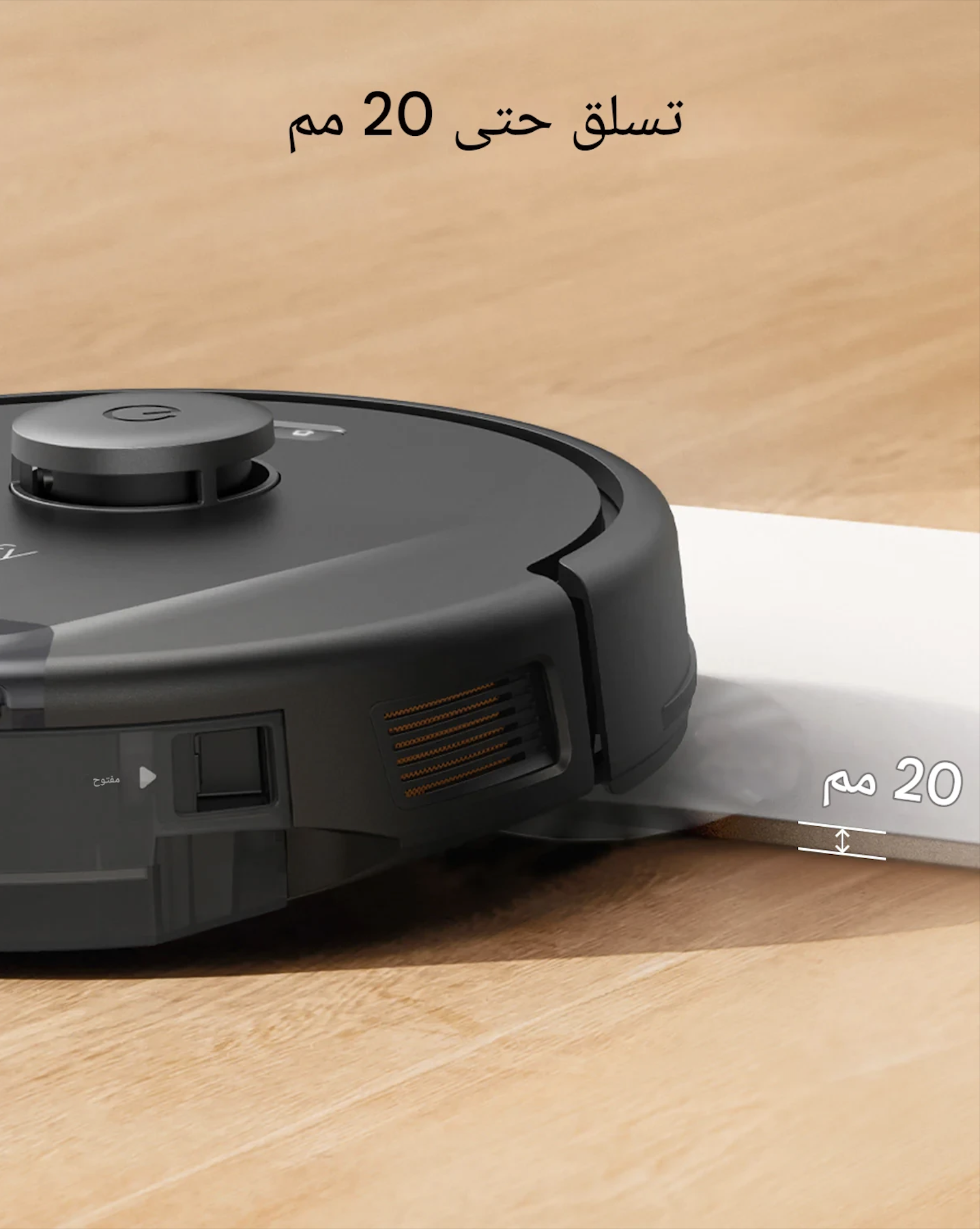 تم تصميم الجهاز بارتفاع منخفض يسمح له بالدخول أسفل الأثاث والأسرّة، كما أن بنيته الانسيابية تجعل حركته سهلة وسلسة داخل المساحات الضيقة.