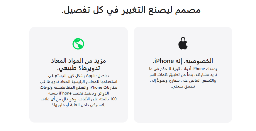 - تغليف يعتمد بنسبة 100 بالمئة على الألياف: بناءً على تغليف البيع بالتجزئة كما يُشحن من شركة Apple. المعلومات المفصلة للتغليف المستخدم في البيع بالتجزئة في الولايات المتحدة بحسب الوزن. تُستبعد المواد اللاصقة والأحبار والطلاء من حسابات محتوى البلاستيك ووزن العبوة.