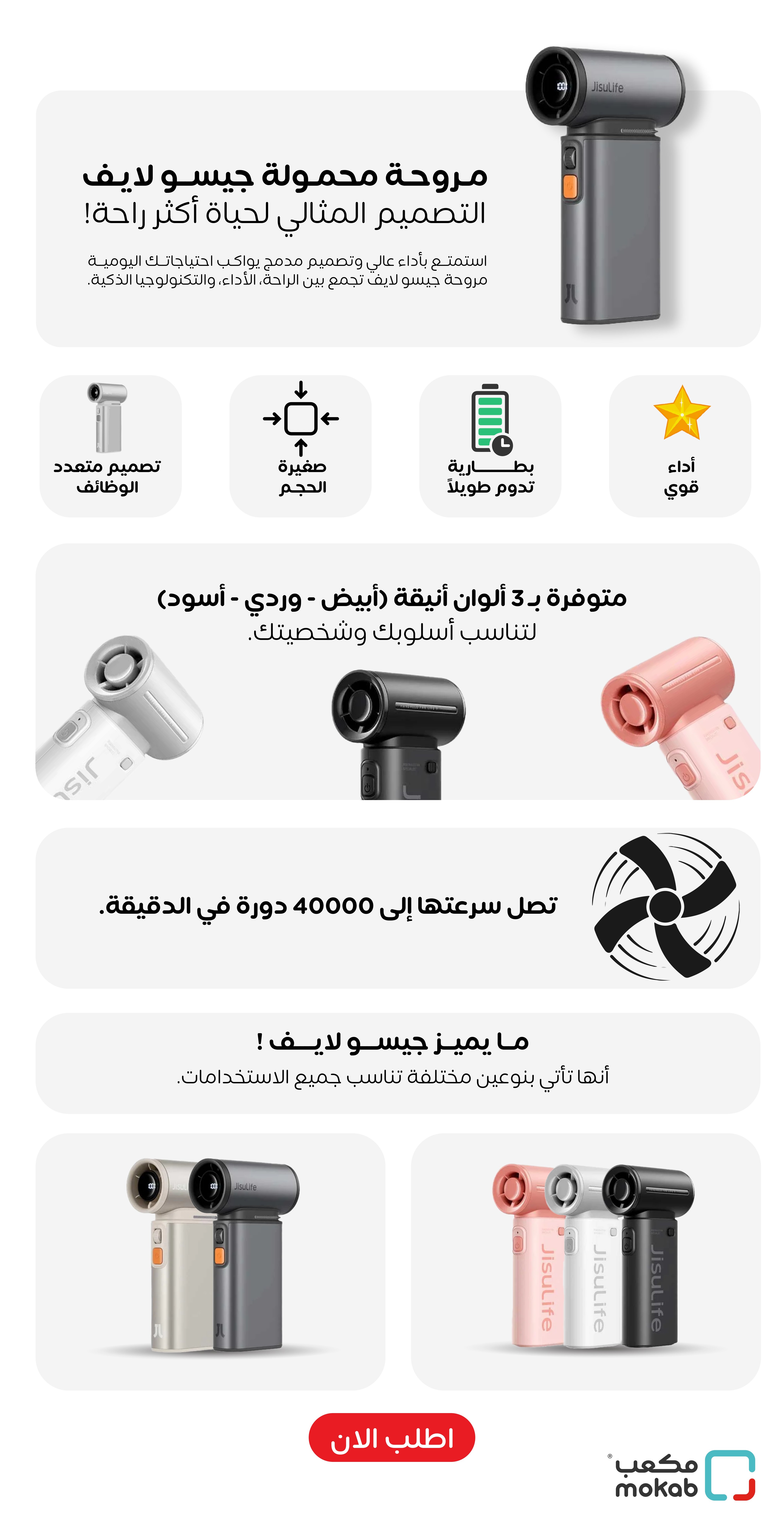 تبريد فائقة: يتميز مروحة JISULIFE المحمولة بتصميم مبتكر بـ 9 شفرات، مع محرك عالي السرعة يعمل بالتيار ثلاثي الأطوار، مما يوفر سرعة رياح تصل إلى 10 م/ث كحد أقصى. تصل سرعتها إلى 40000 دورة في الدقيقة، أي أربعة أضعاف سرعة المراوح اليدوية العادية.