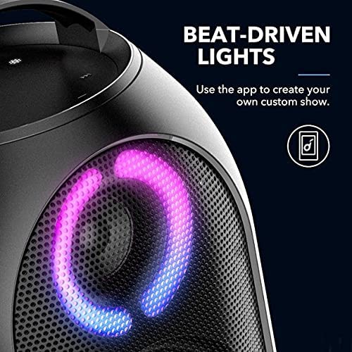 مكبر صوت انكر ساوندكور راف بارتي كاست اللاسلكية 80 واط وقت تشغيل 18 ساعة IPX7 مقاوم للماء - أسود