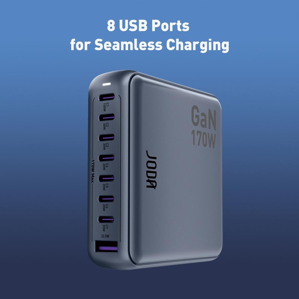 منصة شحن JODA فولتيكس بقوة 170 واط بسبعة منافذ تايب سي و منفذ يو اس بي