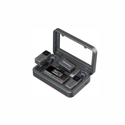 نظام ميكروفون لاسلكي صغير 2-Person Mini Lavalier مصمم للعمل مع الجوالات، الكاميرات، وأجهزة الكمبيوتر. يتميز بجهاز استقبال صغير مع منافذ متعددة (3.5mm، USB-C، وLightning اختياري) لتوافق واسع. يوفر مدى لاسلكي يصل إلى 300 متر تقريبًا مع علبة شحن تضيف أكثر من 20 ساعة من الاستخدام الإضافي، ليكون الخيار المثالي للتصوير الخارجي، البث المباشر، والمقابلات الثنائية.